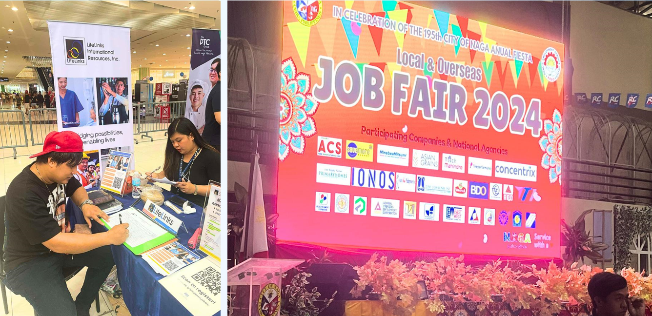 Lifelinks recently participated in the “Local & Overseas Job Fair 2024″ held in celebration of the 195th City of Naga Annual Fiesta last October 9. COnducted at the Enan Chiong Activity Center in Cebu, the event was organized by the Public Employment Service Office (PESO) and attended by Lifelinks team members Caryl and Tihanny. Lifelinks offered aspiring jobseekers career opportunities across industries such as healthcare, hospitality, and IT, highlighting their commitment to bridging skilled Filipinos to global markets. The event was well-attended, providing Lifelinks with the platform to present overseas job openings and connect with local talents.